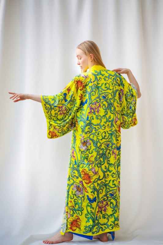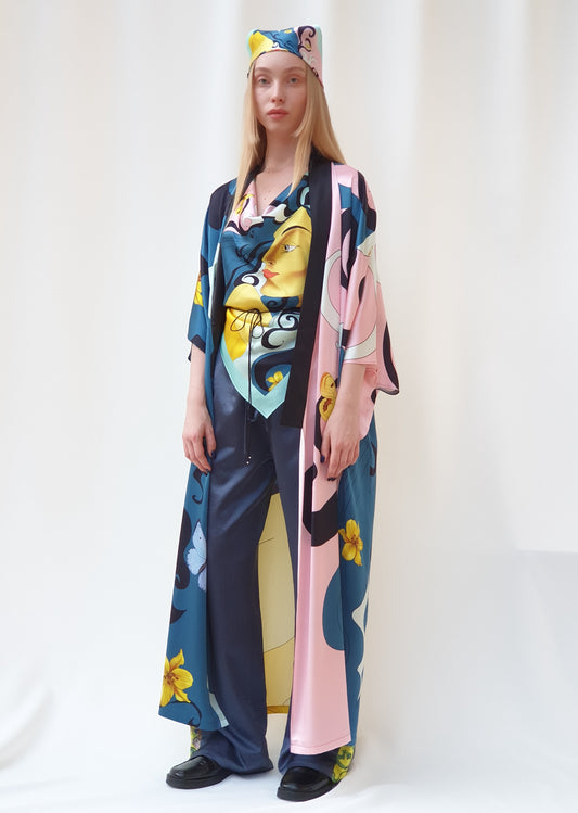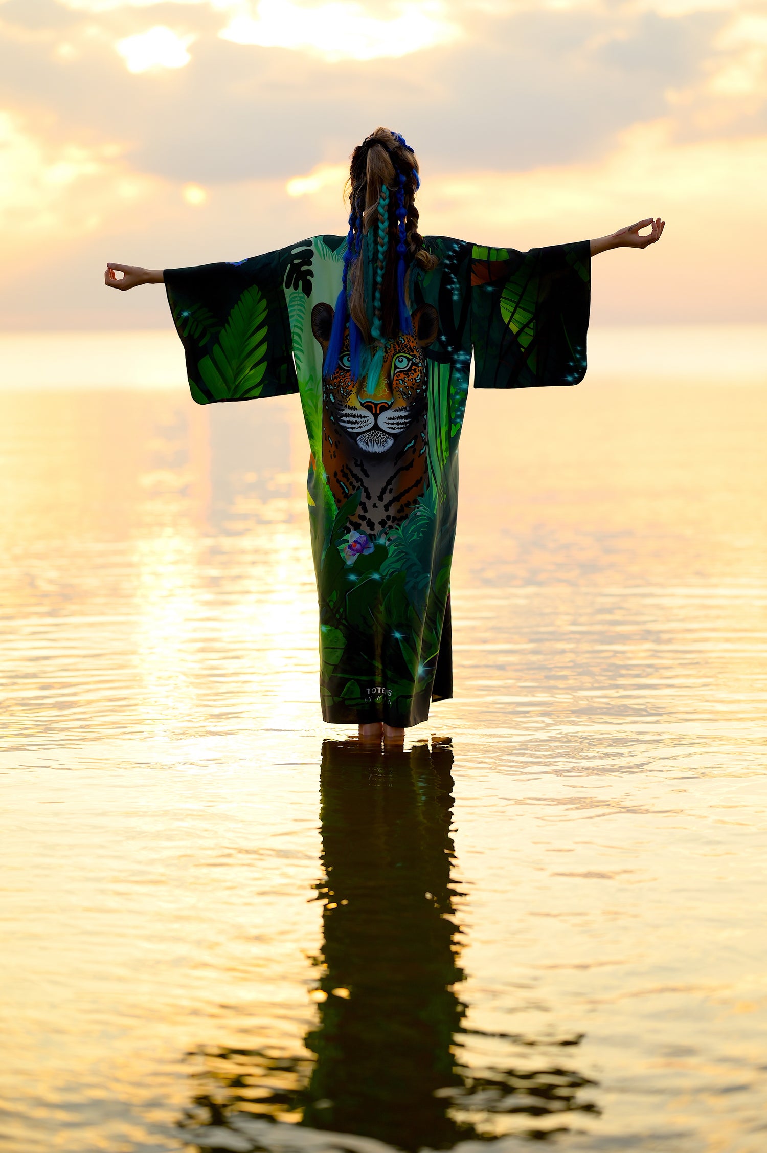 The brand's headliner is the kimono — a symbol of conscious clothing philosophy, conveying beauty, etiquette, sincerity, a respectful approach to life, love for nature, gratitude to all existence, and reverence for divine creative energy.