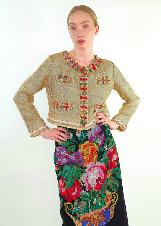 Short linen blazer with vintage embroidery "Tulips"