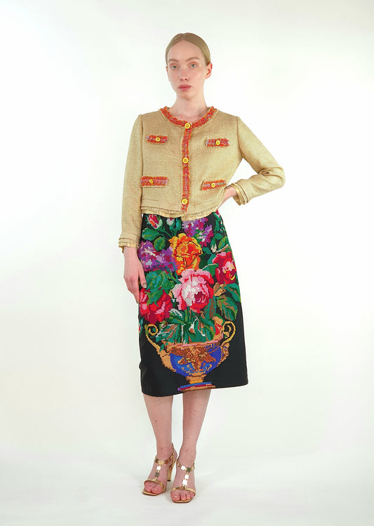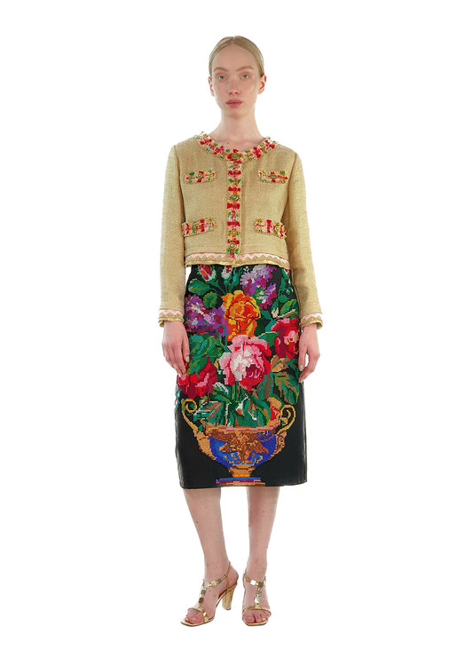 Skirt "Pink Bouquet" with Vintage Embroidery